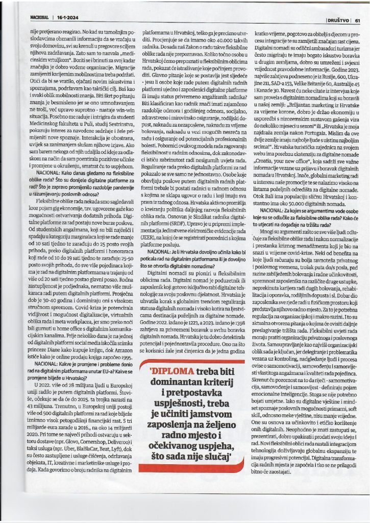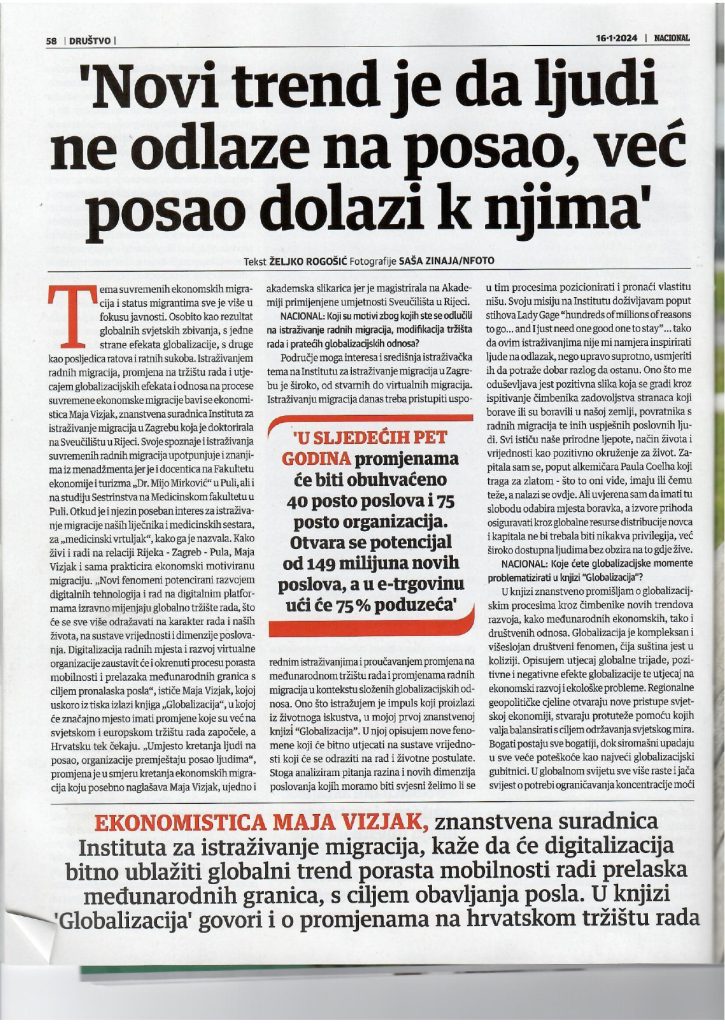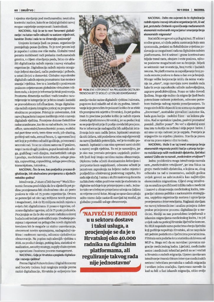 Umjesto kretanja ljudi na posao, organizacije premještaju posao ljudima! Globalni trend porasta mobilnosti radi prelaska međunarodnih granica s ciljem obavljanja posla bitno će ublažiti digitalizacija radnih mjesta i razvoj virtualne organizacije. Globalno tržište rada mijenja svoje učinke i mogućnosti potencirano digitalizacijom. Imati željeni standard (način poslovanja i prihode), a živjeti (ostati) u domovini omogućila je digitalizacija radnih mjesta. Globalne zaposlenike digitalnih radnih mjesta promatramo kao nosioce znanja i vještina, sve to u korelaciji poslovne prakse uvjeta globalnoga virtualnog tržišta rada, a informacija je bitak poslovanja. Prostorna dimenzija nadilazi tradicionalno razumijevanje kategorije budući da je bitno imati i baratati pravodobnom informacijom stoga digitalizacija integrira veliki poticaj za progresivne strukturne promjene. Pristup je univerzalan dok razvoj kapaciteta ovisi o razvoju digitalnih vještina, a time i raspon korištenja. Fleksibilni radni aranžmani su: rad od kuće tzk home office, samostalni/konzultantski posao, mobilni rad part time work, term-time work, job-sharing,  godišnji sati rada – annual hours tj ugovoreni broj sati koji je potrebno odraditi godišnje, privremeni i sezonski rad. To nisu samo IT poslovi, nego i kreativne usluge, grafički i web dizajn, marketinške usluge i prodaja, medicinske konzultacije, usluge pisanja, copywriting, copyediting i prevođenja, transcriptions, tutorstva…