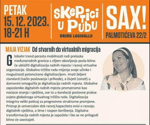 Prva dionica 'virtualne migracije' istraživati će potencijal globale mobilnost digitalnih radnih mjesta s implikacijama poslovne prakse na tržištu rada u Republici Hrvatskoj.U suvremenom poslovnom okruženju, razvoj digitalnih poslovnih modela ovisi o nizu čimbenika koji mogu predstavljati prilike, ali i izazove. Neophodno je detektirati i analizirati te čimbenike kako bi se omogućila uspješna digitalna transformacija s ciljem izgradnje agilne i otporne radne snage. Jedan od prvih koraka uključuje identifikaciju poslovnih aktivnosti koje se mogu uspješno odvijati u virtualnom okruženju, što omogućava fleksibilnije oblike rada i značajne uštede resursa. Pojedini sektori pokazuju različite stupnjeve spremnosti na digitalne implikacije, stoga je ključno detektirati koji su najprikladniji za razvoj digitalnog poslovanja. Implementacija digitalnih modela zahtijeva i odgovarajuće organizacijske promjene, kao što su novi oblici upravljanja, strukture timova i metode evaluacije. U tom kontekstu, sposobnost upravljanja virtualnim organizacijama postaje presudna za uspjeh.